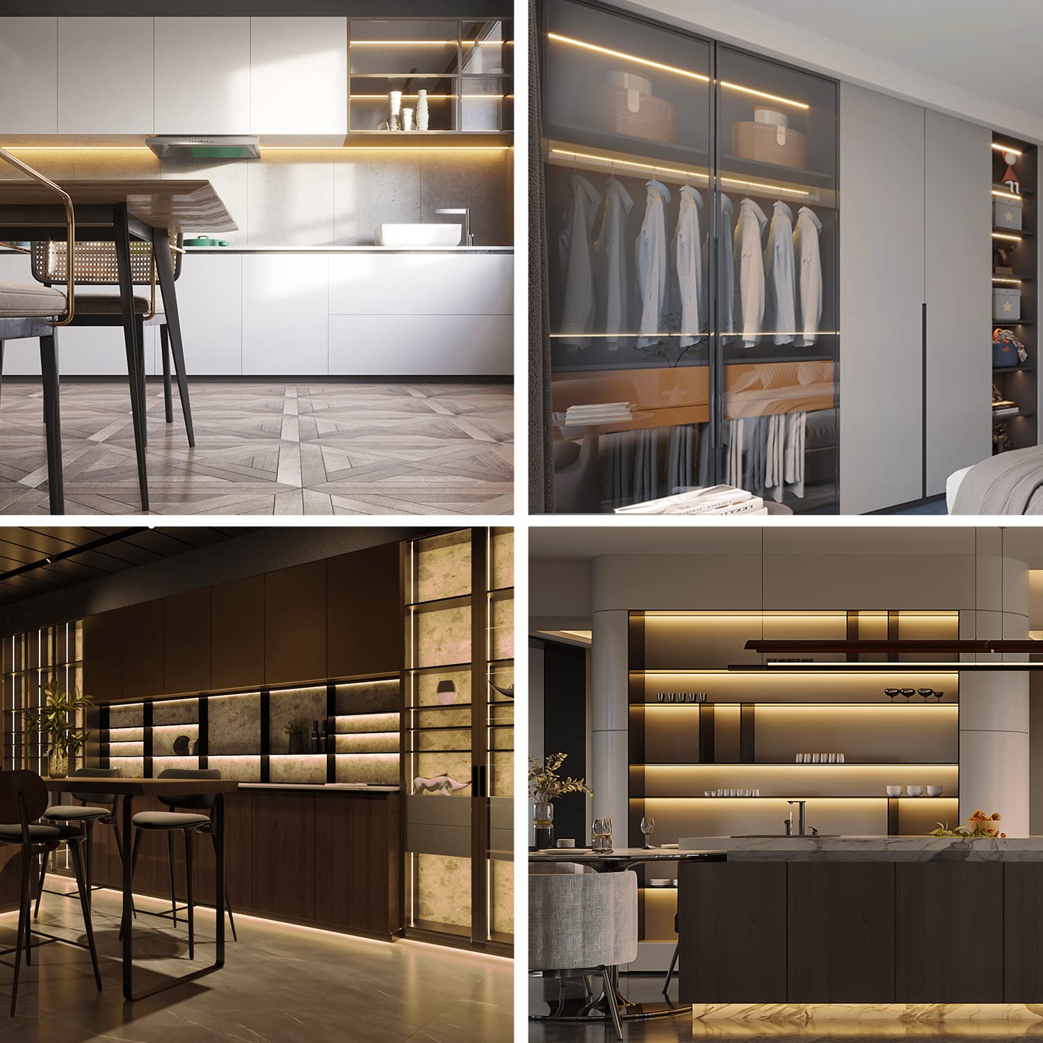 HS07 Under Cabinet Lighting Kit Plug in, Wired Dimmable Ultra-Thin LED Lights with Touch Control for Kitchen Counter Closet Shelf Lights(Warm White 3000K)