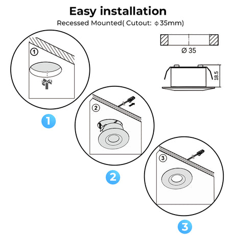 CB15 12V 1.5W 3000K Mini LED Puck Light Recessed Mounted for Bedroom Reading Room & Cloakroom