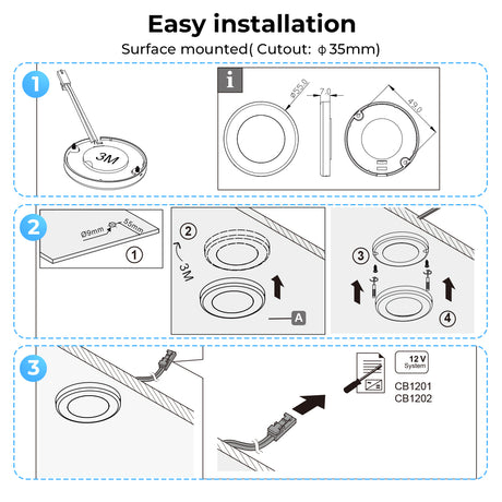 PL06 12V 3W Ultra-Thin Surface Mounted Puck Light 4000K CRI 80+ for Kitchen Living Room and Hallway