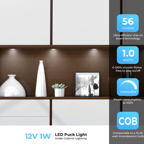 PL05 12V 1.8W Cabinet Puck Light 3000K Recessd & Surface mounted for Kitchen Living Room & Bookshelf