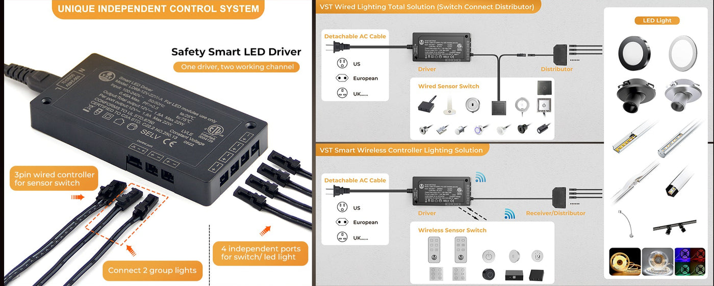 LD68 12V/24V 22W LED Driver– ETL Listed, with JST Port for LED Strip Lights & Under Cabinet Lights