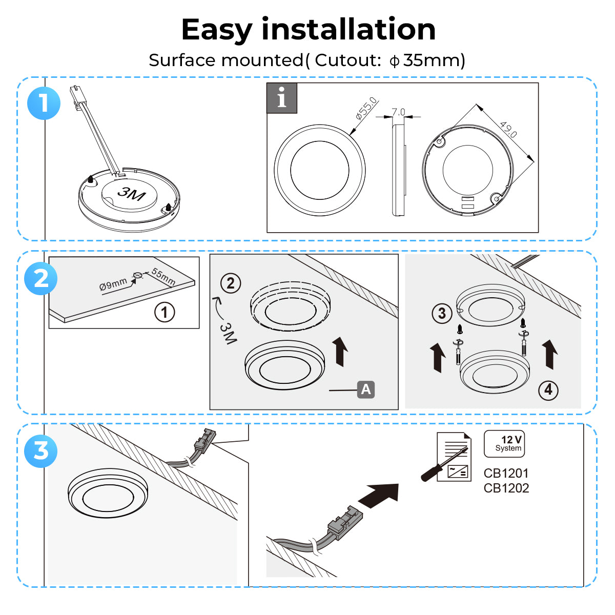 CB10 12V 1.8W Undercabinet Puck Light 4000K Surface Mounted LED Panel for Closet & Display Cabinet