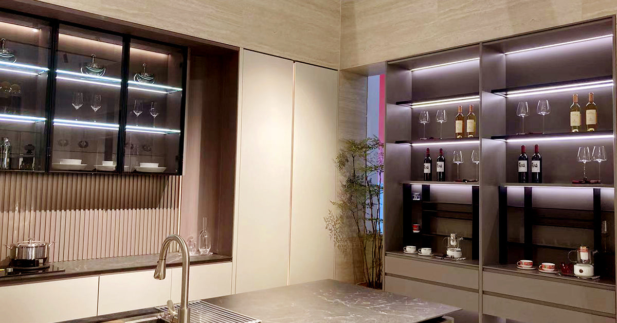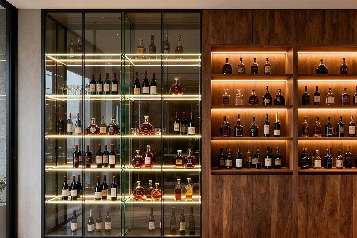 Showcase your wine collection with elegant LED lighting solutions. Our discreet strip enhances bottle visibility while creating a warm, inviting glow. The membrane touch dimmer switch and double door sensor switch provide convenient and easy installation. Perfectly designed for wine cabinets and cellars—add style, function, and ambiance with VST lighting.