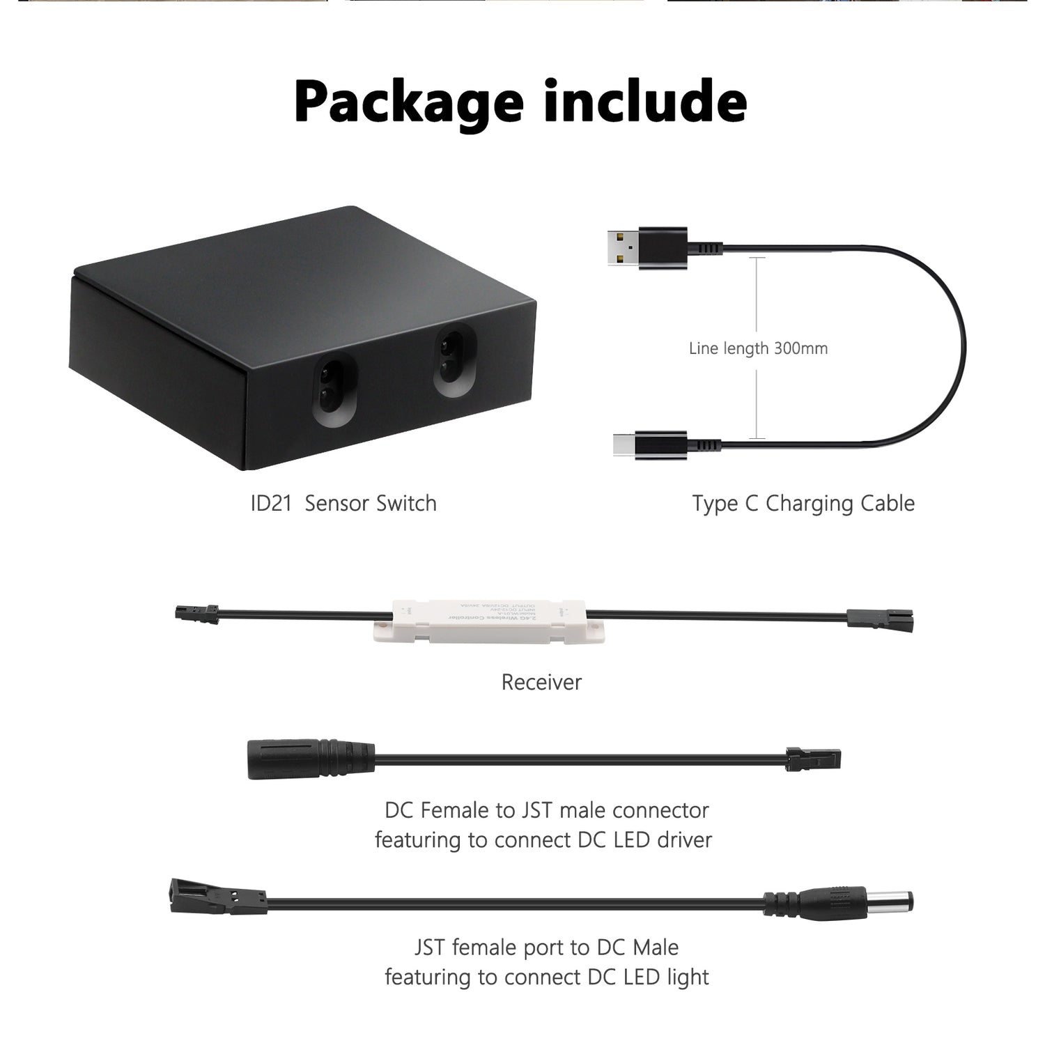 ID21 Wireless Double Door Sensor Switch – Surface/Recessed Mounted, Brightness Adjustable, Double Door Activated, for Dual-Door Wardrobes or Kitchen Cabinets